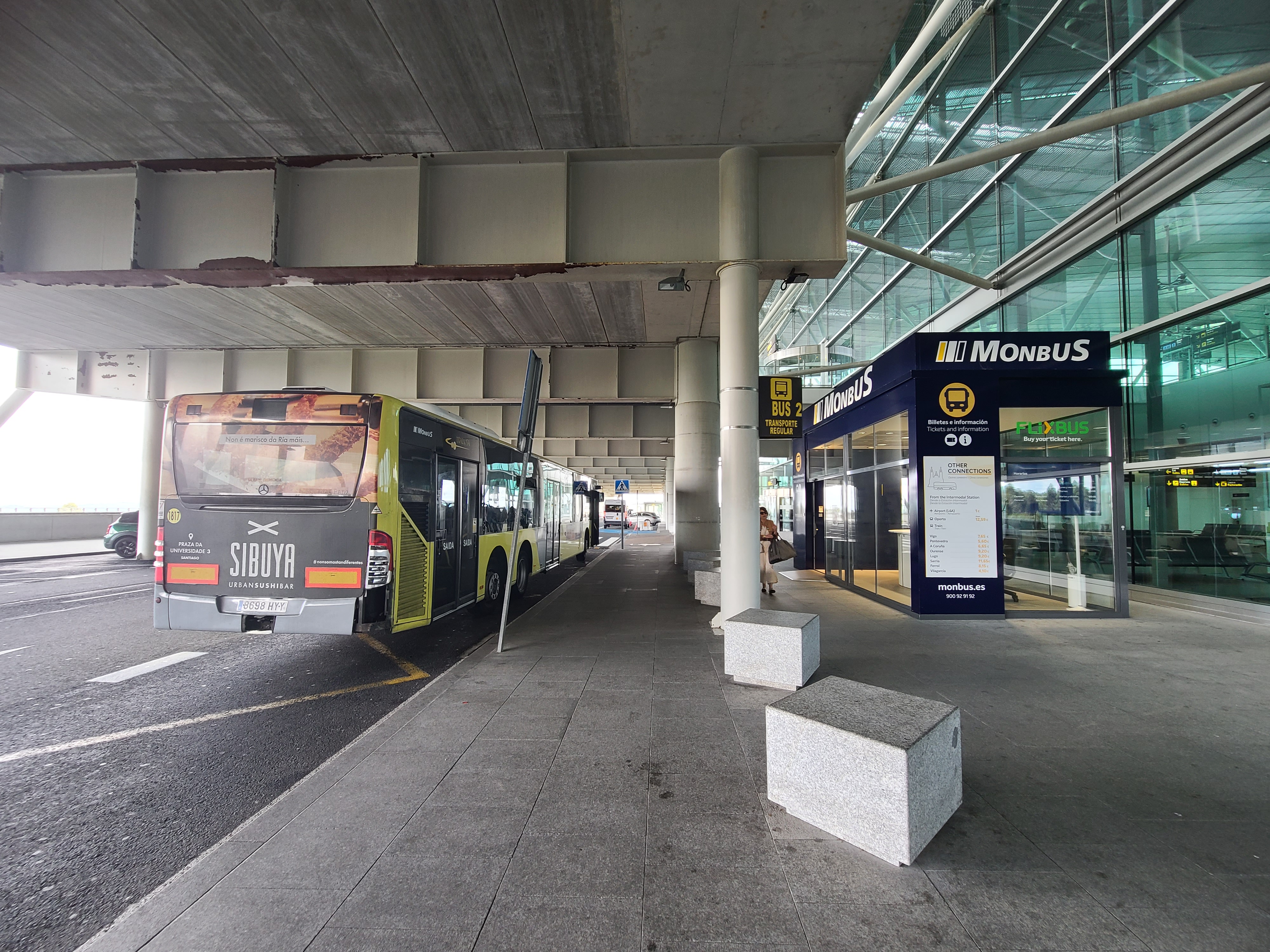 산티아고 시내에서 공항으로 가는 버스를 탔어요.